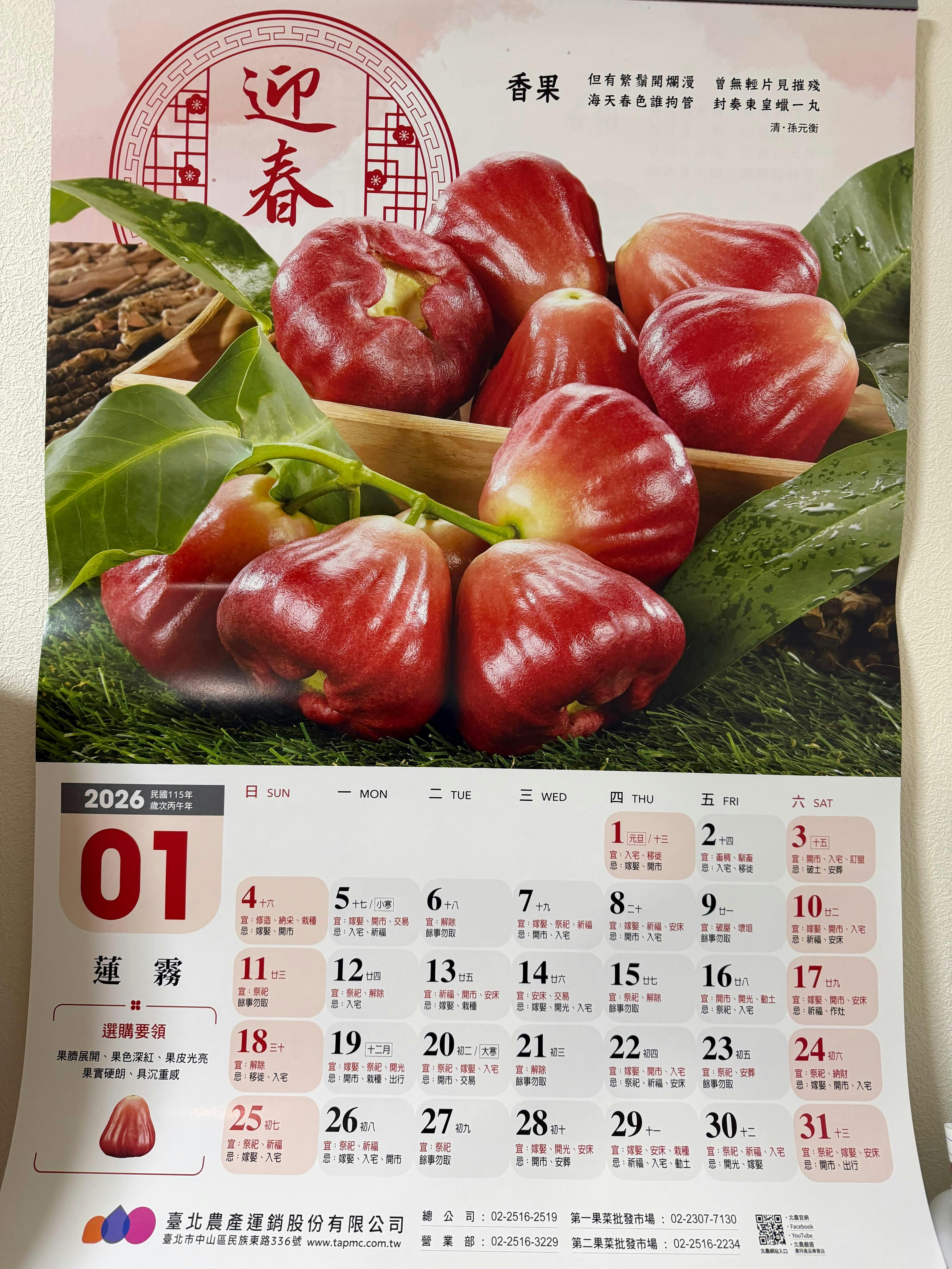 台湾はフルーツの楽園。温暖な気候に恵まれ、一年を通して日本ではなかなかお目にかかれない果物が豊かに実ります。そんな台湾の魅力を丸ごと楽しめるのが、台湾果物取扱量No.1を誇る「台北農產運銷公司」より発売された2026年版カレンダーです。